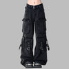 Spodnie Gotyckie Czarne Kieszenie Paski Sprzączki Cargo