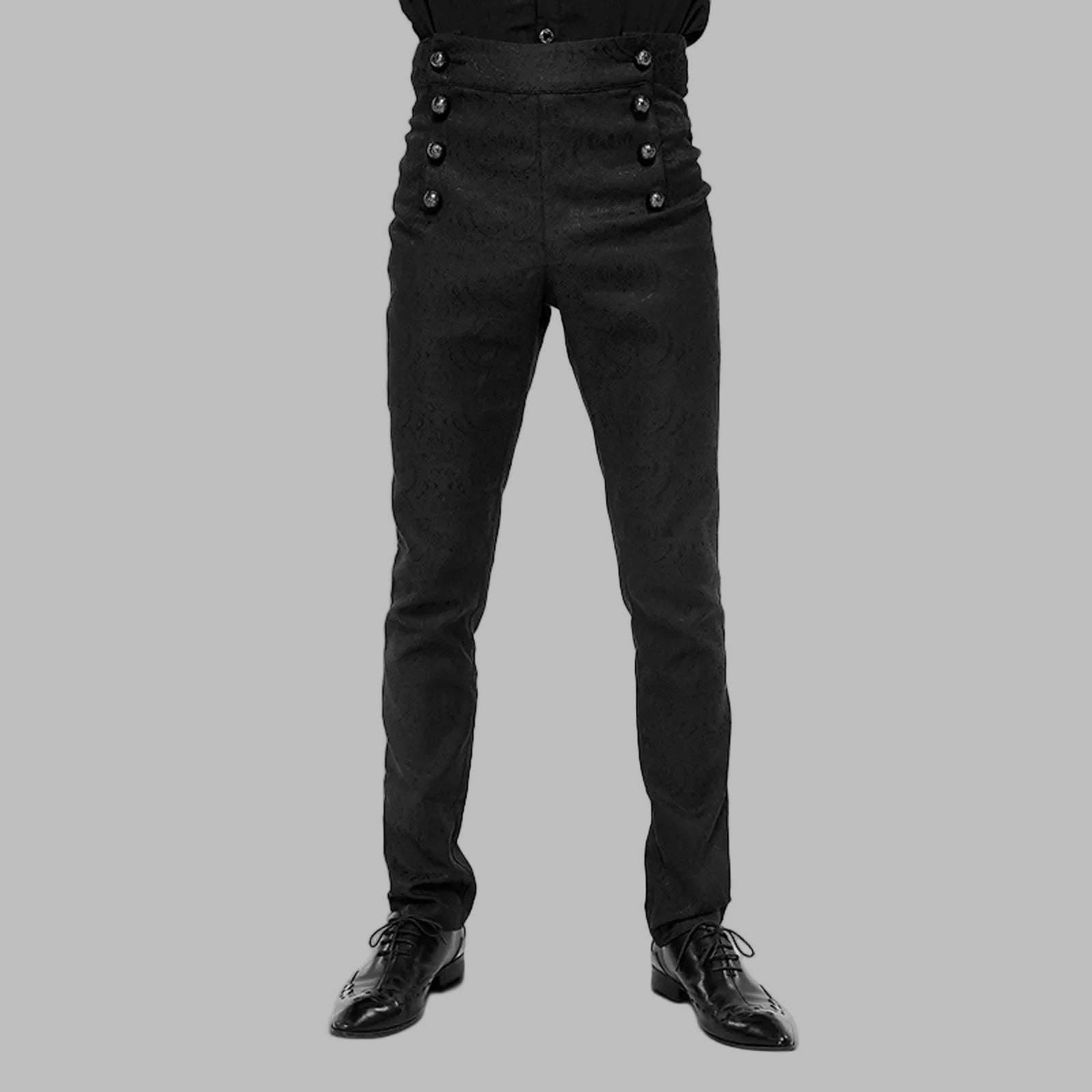 Spodnie Gotyckie Czarne Męskie Guziki Wysokie Stan Wizytowe