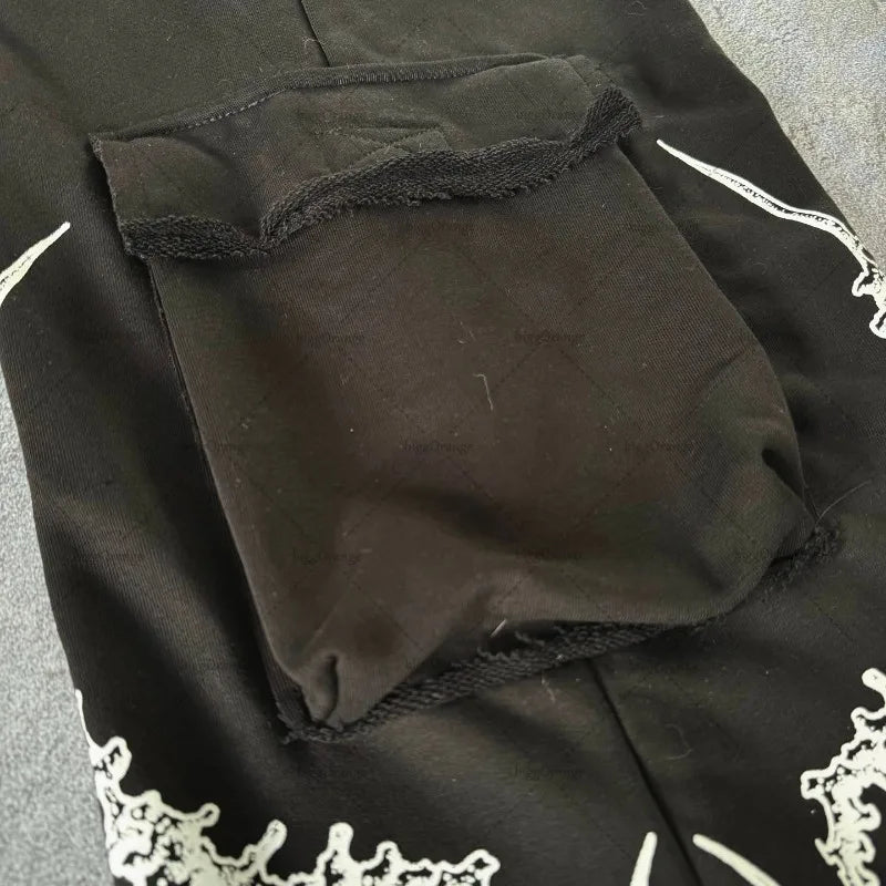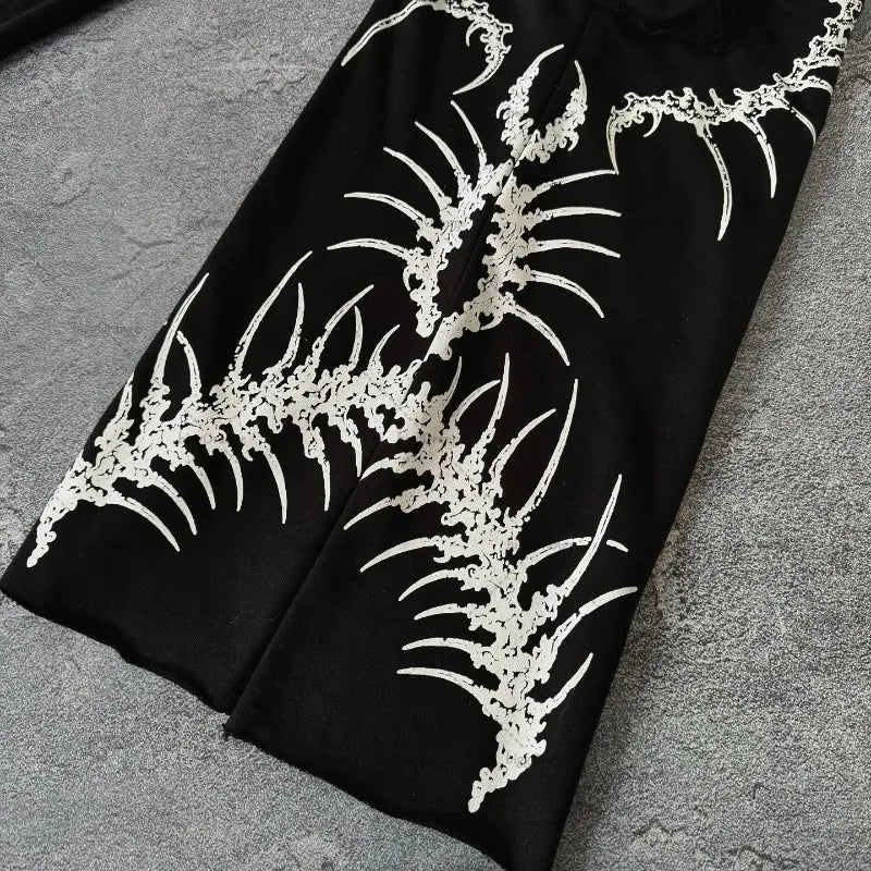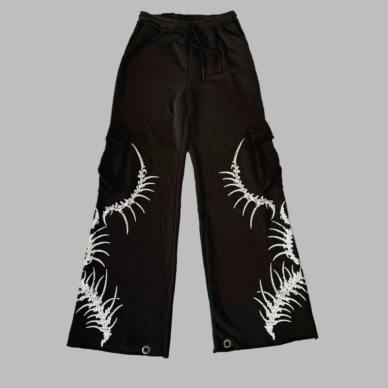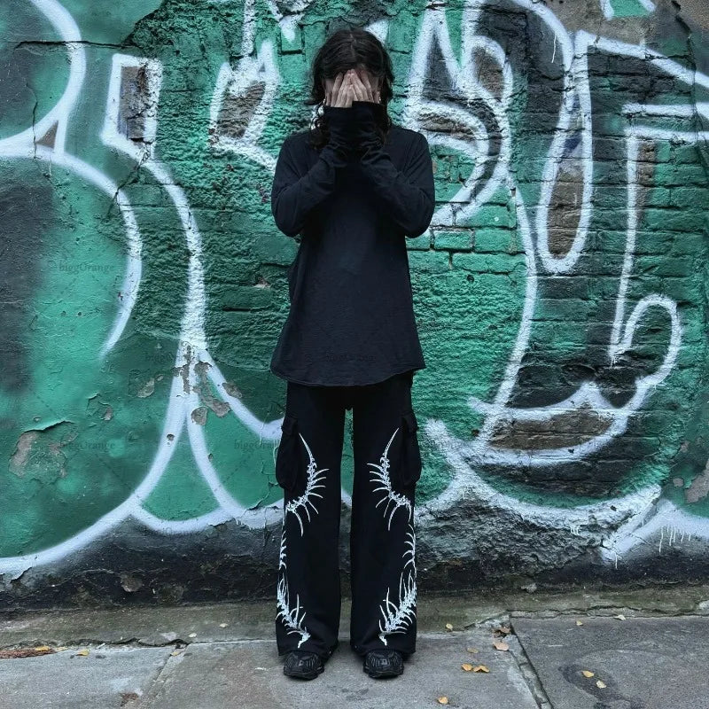 Spodnie Gotyckie Grunge Nadruk Kości Szkielet Darkwear