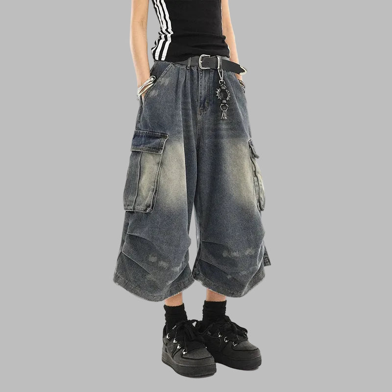 Spodnie Grunge Jeansowe Krótkie Szerokie Damskie Cargo