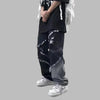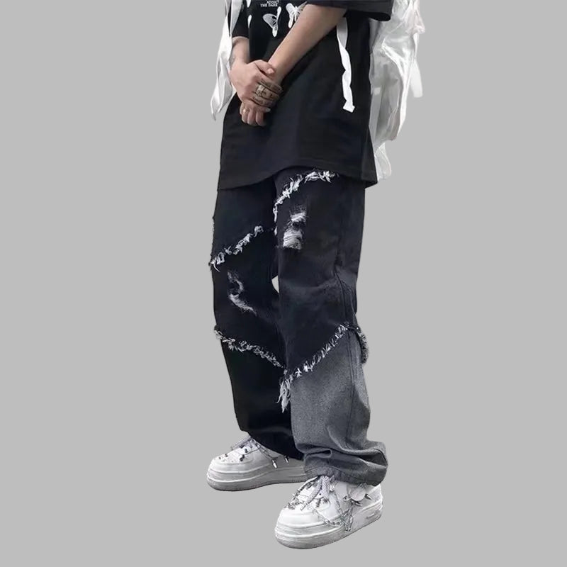 Spodnie Jeansowe Poszarpane Motyle Nadruk Czarne Szare Męskie Grunge