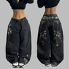 Spodnie Punk Rock Czarne z Haftami Roślinymi Grunge
