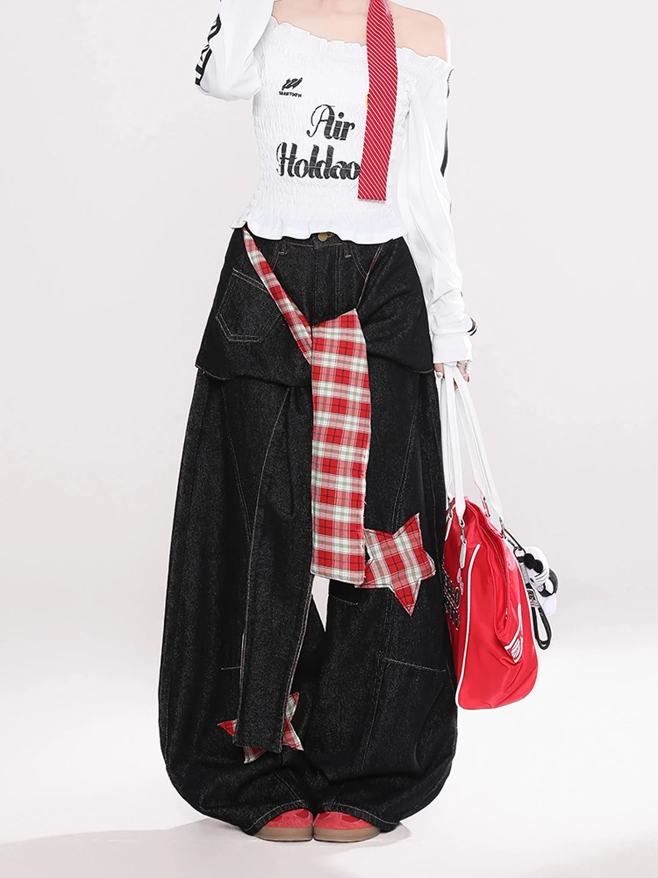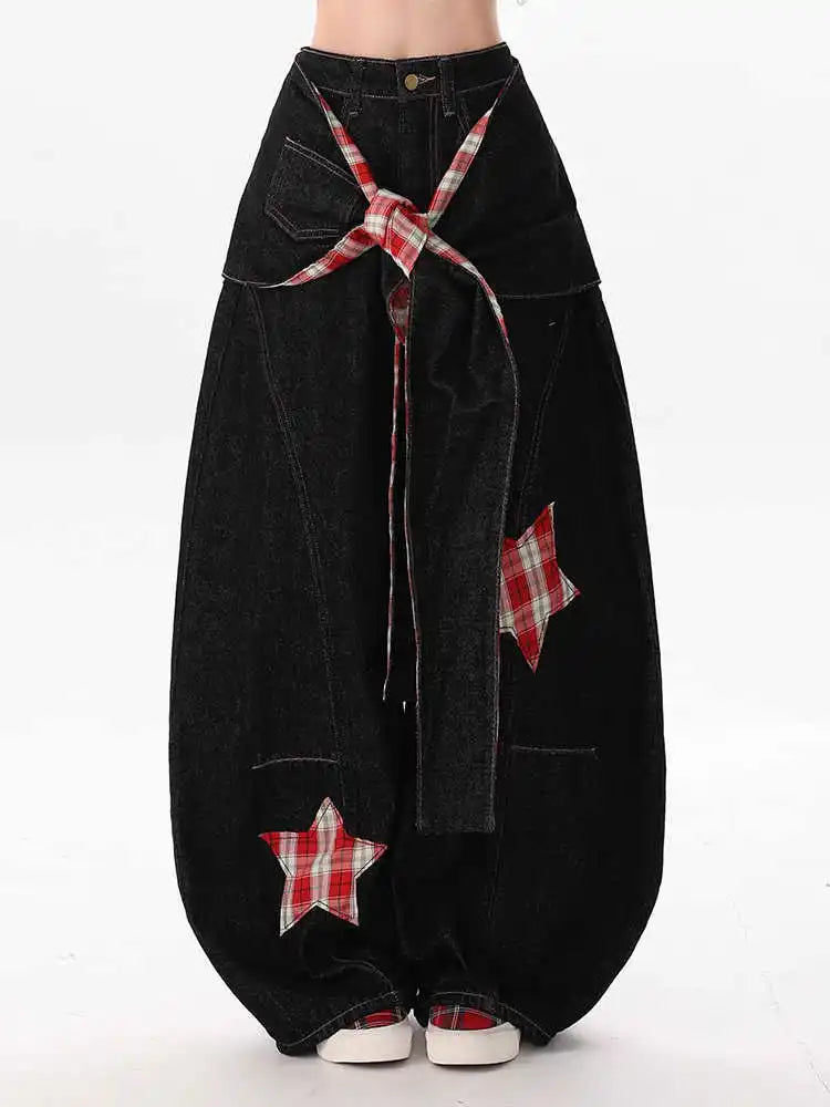 Spodnie Szerokie Punk Czarne Długie z Gwiazdami Damskie Oversize Zobacz opcje