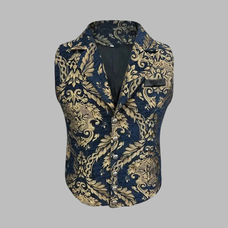 Steampunk Kamizelka ze Złotym Wzorem Granatowa
