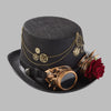 Steampunk Kapelusz z Czerwoną Różą i Okularami Czarny