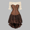 Steampunk Komplet Gorset z Bluzką i Asymetryczną Spódnicą Brązowy 6XL