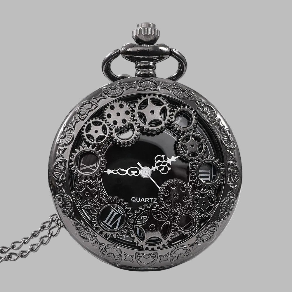 Steampunk Zegarek Kieszonkowy Czarny z Trybami Mechanicznymi