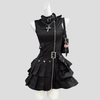 Sukienka Gotycka Czarna Paski Zamek Falbanki Damska