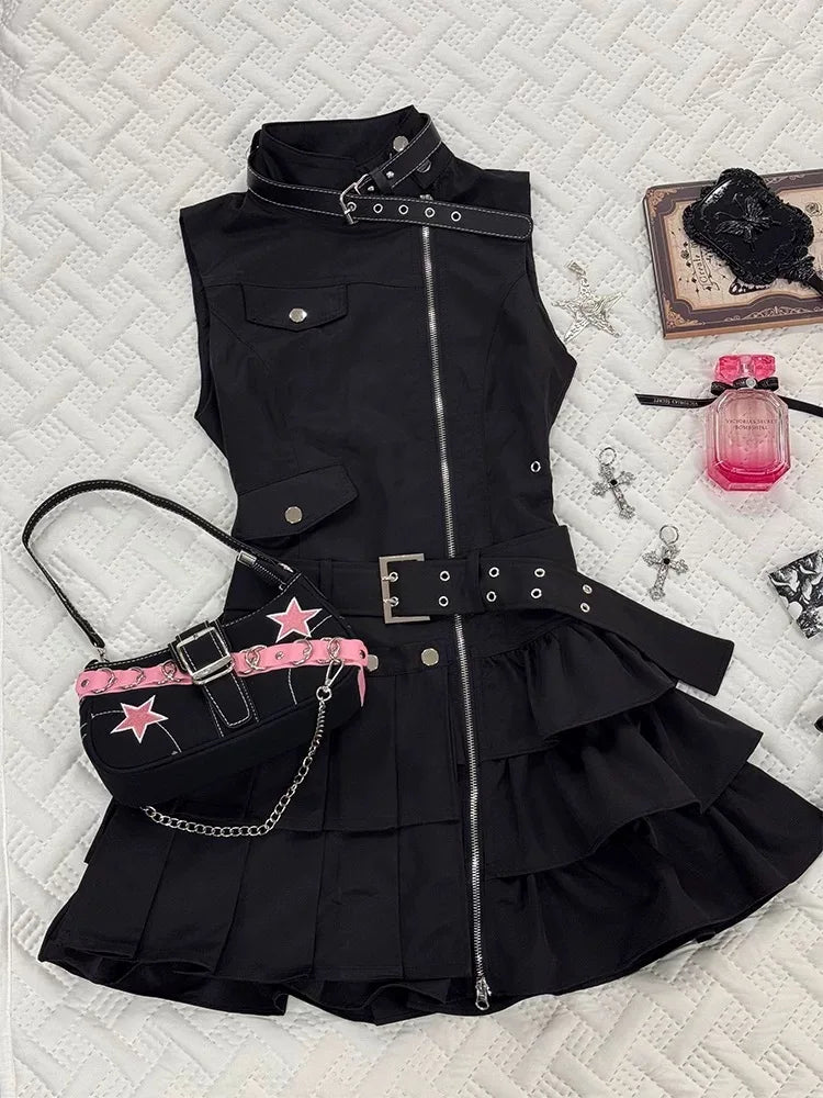 Sukienka Gotycka Czarna Paski Zamek Falbanki Damska Zobacz opcje