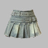 Szara Jeansowa Spódniczka Plisowana z Metalowymi Paskami Punk Rock