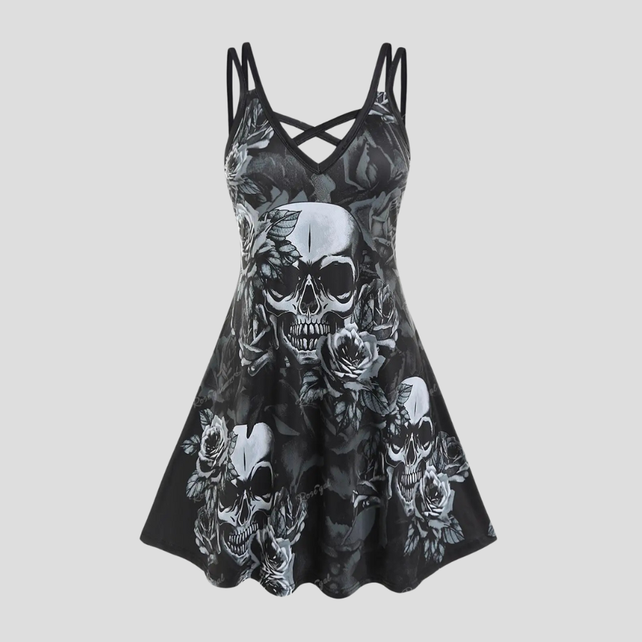 Szara Sukienka Metal z Czaszkami i Różami Rock Zobacz opcje