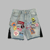Szare Spodenki Jeansowe Rock z Kolorowymi Naszywkami i Łańcuchem