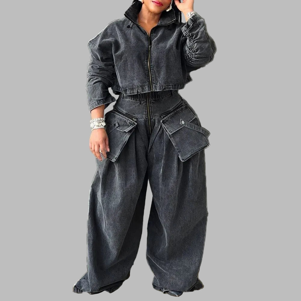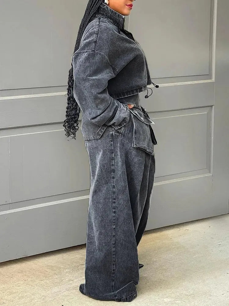 Szary Kombinezon Punk Jeansowy z Kieszeniami Cargo Zobacz opcje