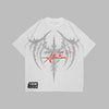 Szary T-shirt Metal z Kolcami i Napisem Attention
