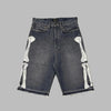 Szorty Jeansowe Rock z Białymi Kośćmi Metal Hardcore