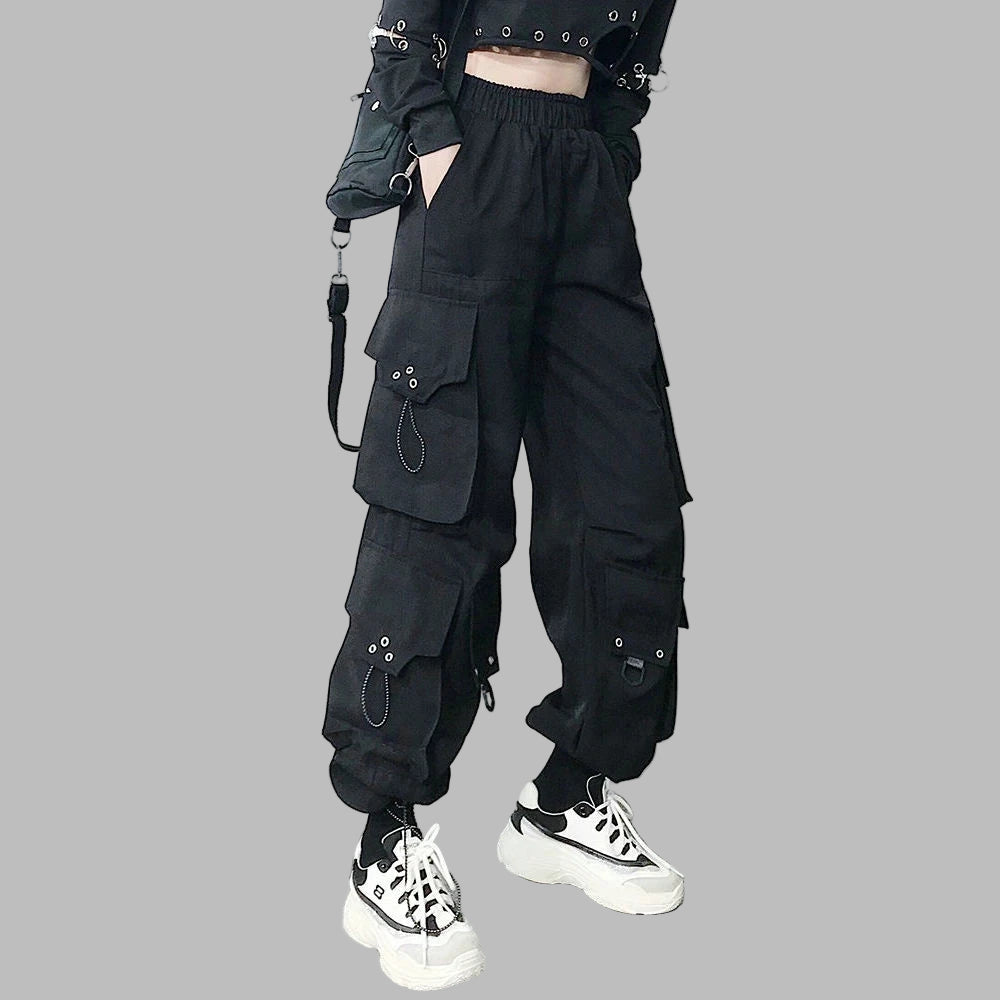 Taktyczne Spodnie Punk z Kieszeniami Łańcuchami Czarne Grunge Zobacz opcje