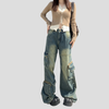 Wytarte Jeansy Cargo Rock z Kieszeniami Vintage Zielone