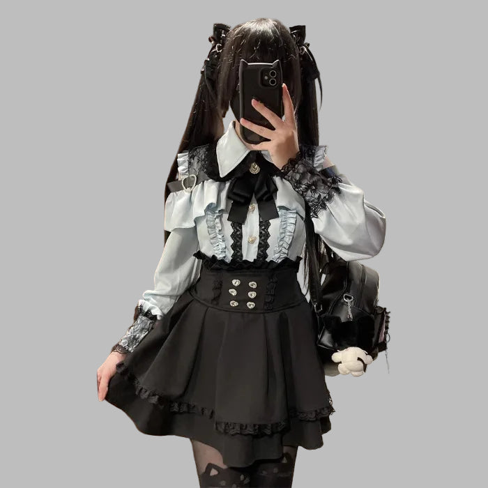 Zestaw Jirai Kei z Koronkową Falbanką Czarną Zobacz opcje