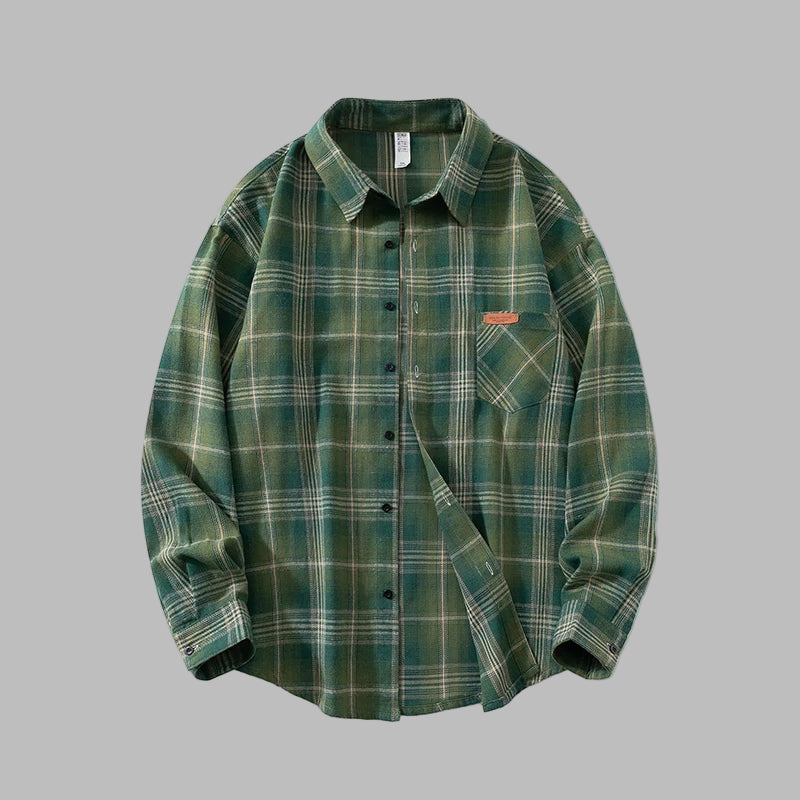 Zielona Koszula w Kratę Grunge Oversize z Kieszenią